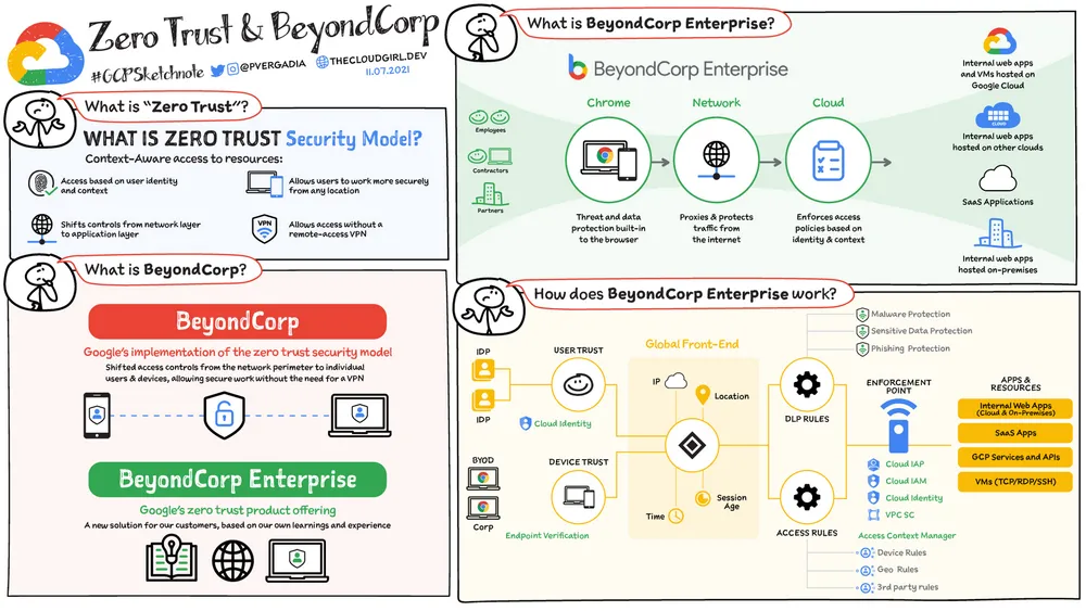- Identity-Aware Proxy (IAP): This is a core component. IAP acts as a policy enforcement point, verifying user identity and device context before granting access to web applications or VMs. It shifts access control from the network perimeter to individual users and devices.